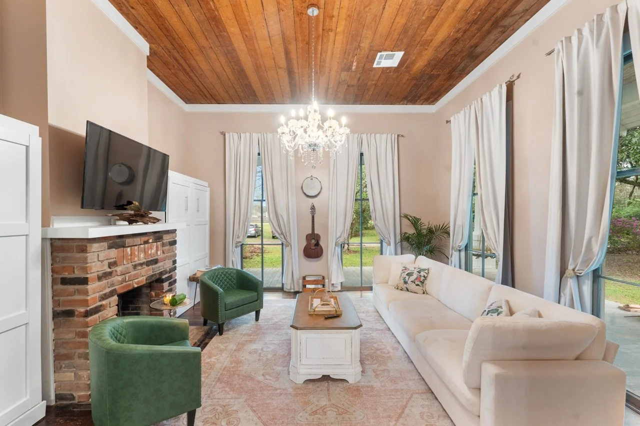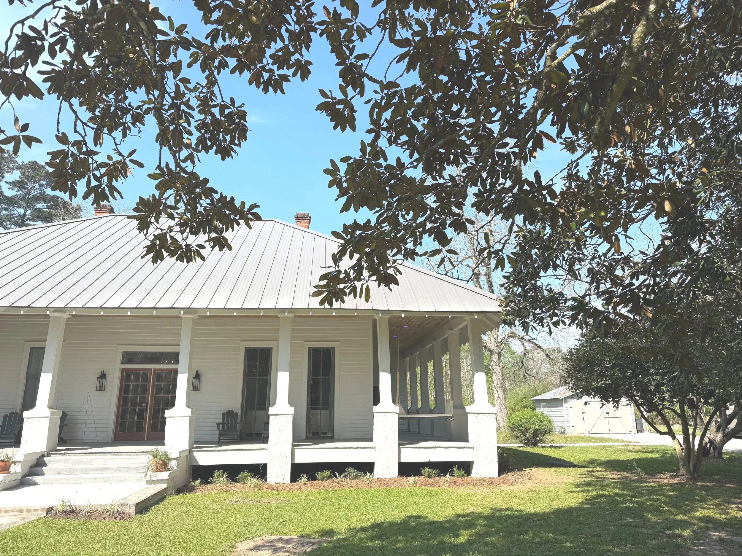 Step outside to sprawling lawns, a stately magnolia, cypress swamp views, and a rustic barn for the livestock. Guests can enjoy the smell of gardenias and honeysuckle from the wraparound porch, gardens, and the charm of our hobby farm.